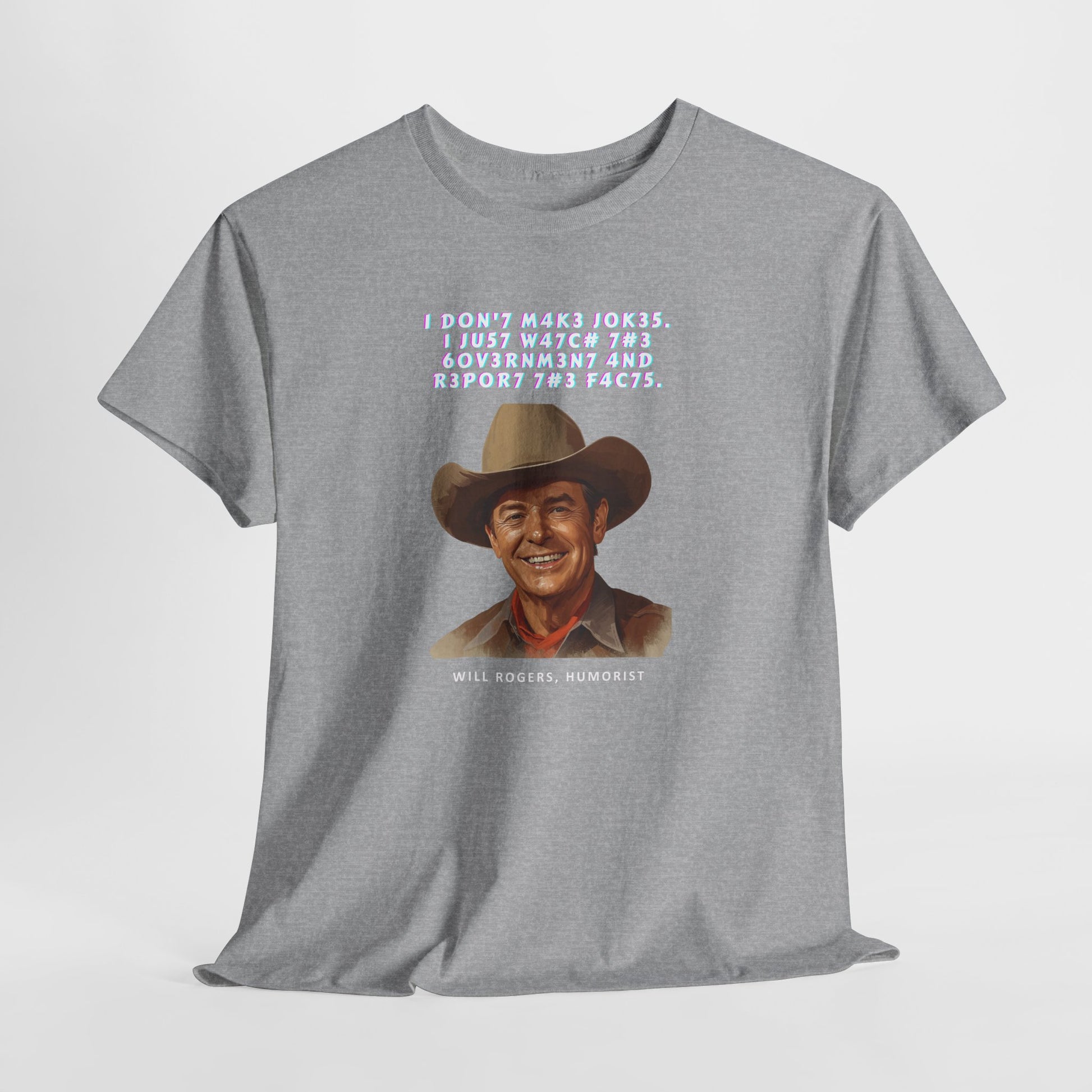 Legendary Will Rogers Unisex Tee with Thoughtful Leet Quote